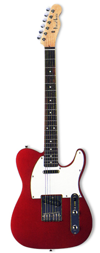 見た目はレッドのテレキャスタータイプ。チャットモンチーのGVoが使っているタイプだ。